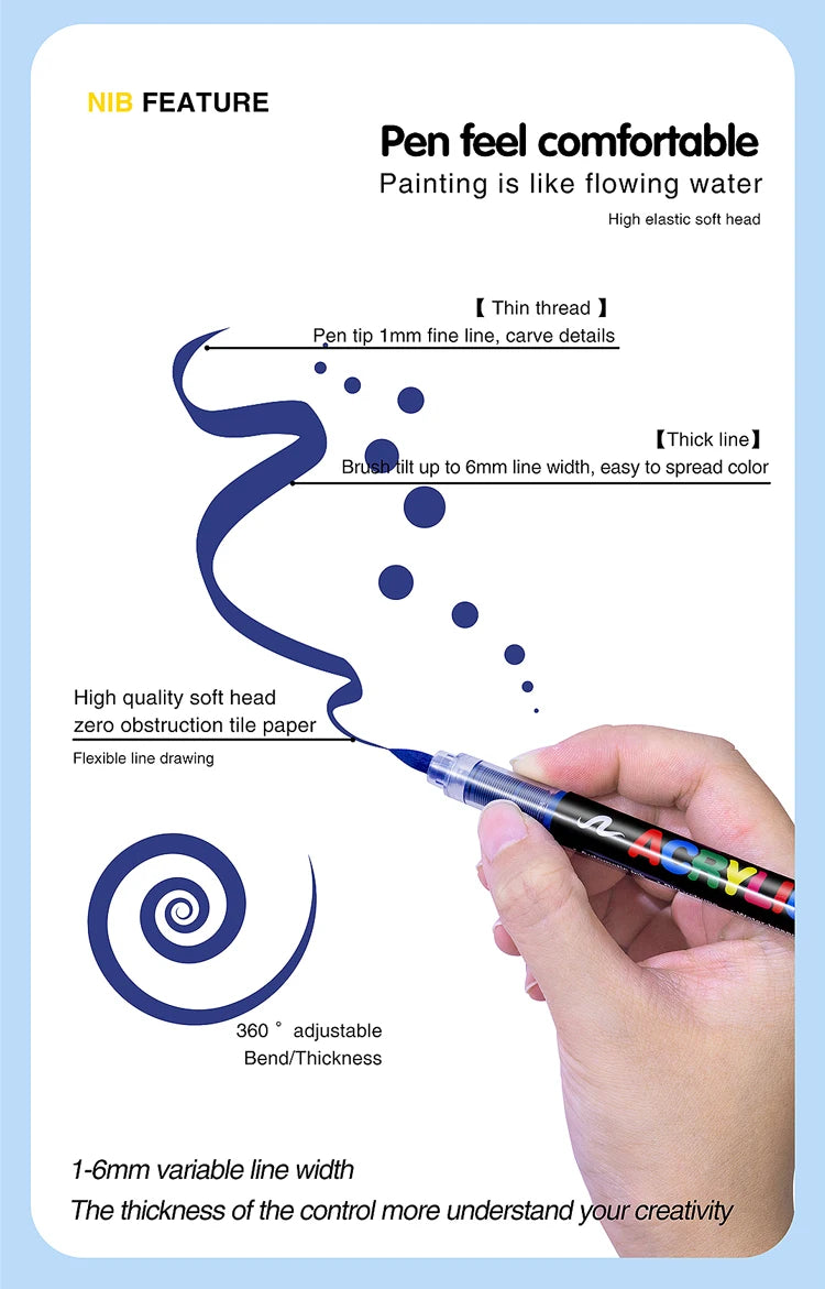 12-120 Colors Acrylic Paint Pens Markers Brush Tip Paint Markers For Rock Painting Wood Canvas Stone,Christmas Gift DIY Crafts