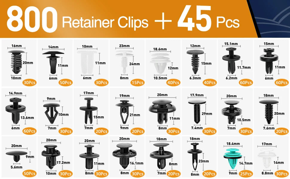 835 Car Push Retainer Black Nylon Fastener Clips in Plastic Box for GM Ford Lexus Honda Chrysler Mazda Nissan Jeep Ford