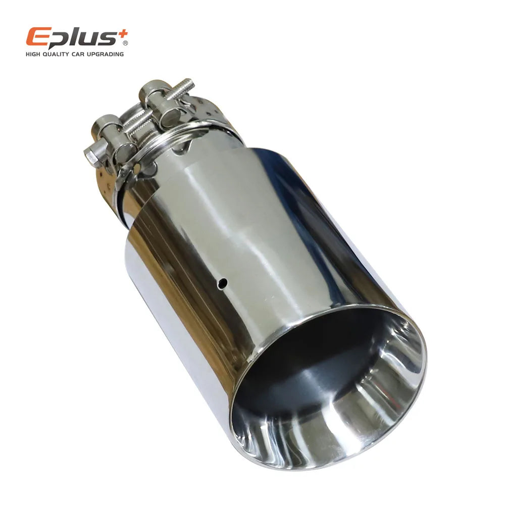 Eplsu Car Stainless Steel Silver Muffler Tip Universal Exhaust Pipe Mufflers bilayer Nozzle bilayer Decoration Bevel End