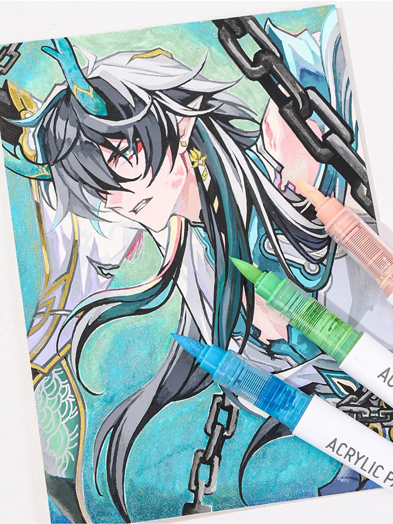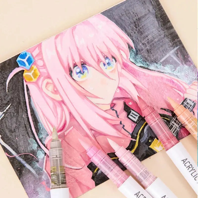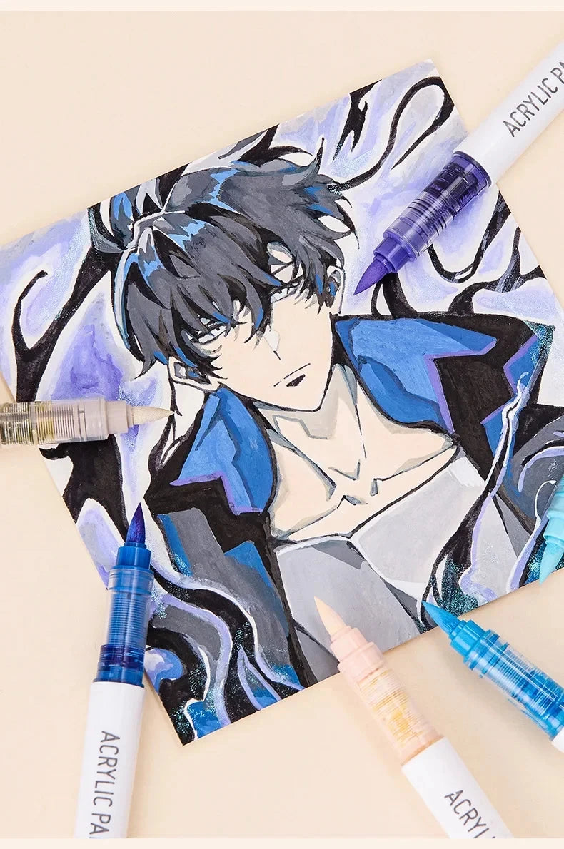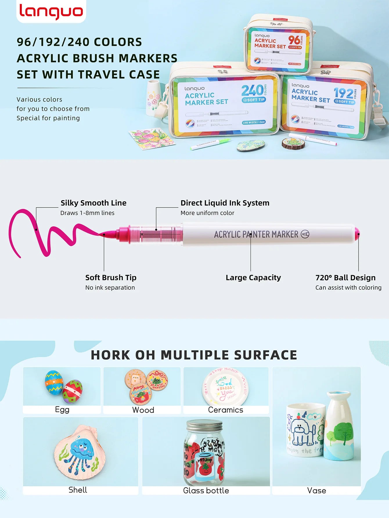 Languo 9pcs/box Soft Brush Acrylic Marker Pen Set,DIY Hand Drawn,Paint Art Markers pens,Student Graffiti Acrylic Paint Pens,M720