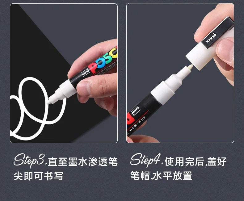 UNI POSCA Markers Set PC-1M/3M/5M Permanent Acrylic Paint Pen Quick Dry Graffiti Painting Art Supplies Japanese Stationery
