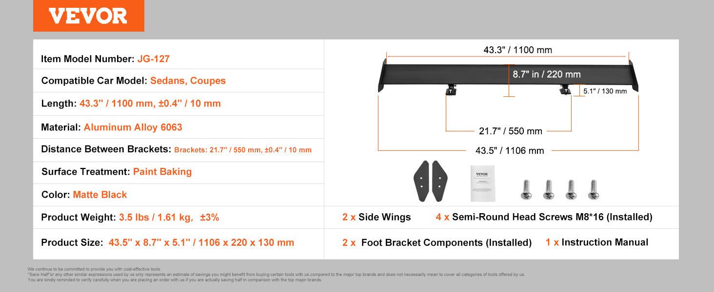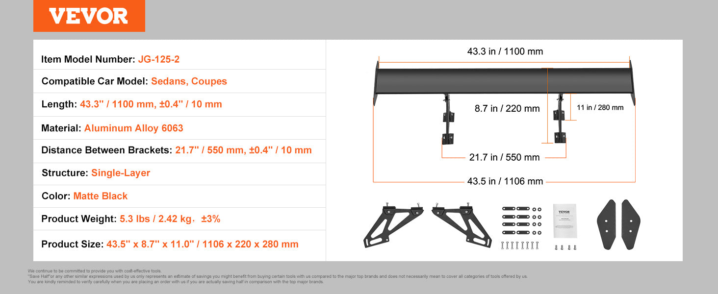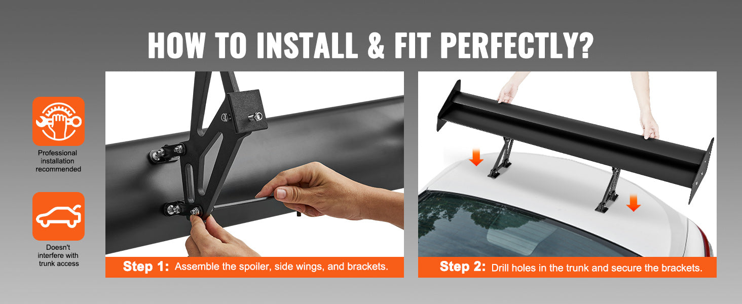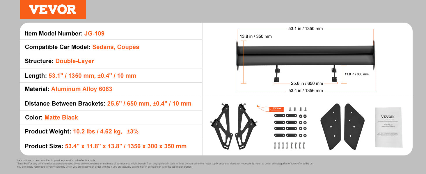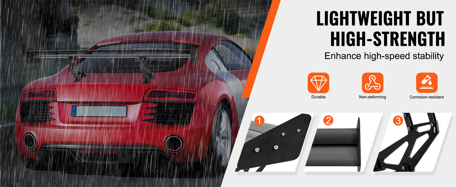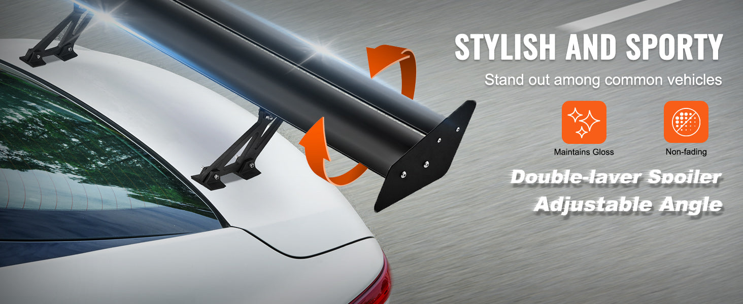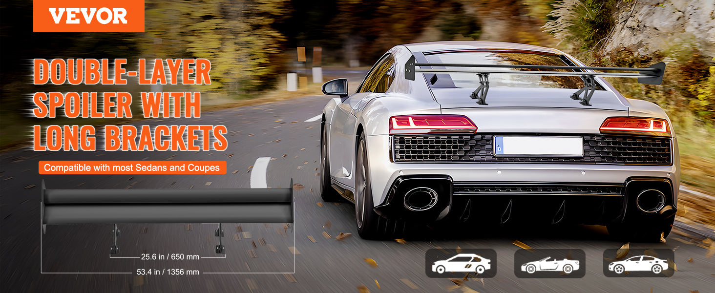 VEVOR GT Wing Car Spoiler 53.1 inch Universal Spoiler with Double Deck Car Rear Spoiler Wing, Racing Spoiler BGW/JDM Drift Black